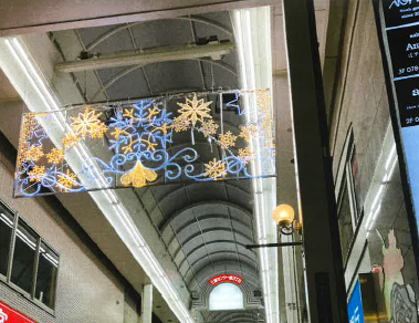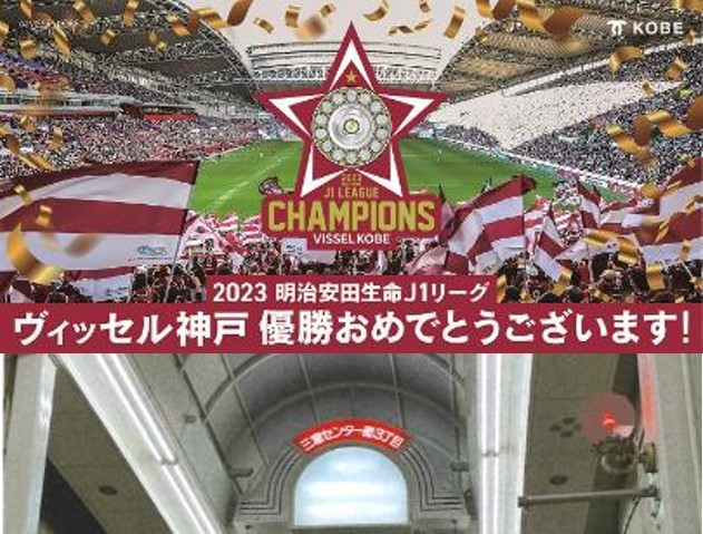 センター街3丁目では、クリスマスイルミネーション&ヴィッセル神戸優勝を祝してライトアップをしています。
